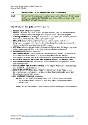 - Schreibe aus der Perspektive des Lehrers deine 5 wichtigsten Qualitätskriterien für ein gutes Erklärvideo: